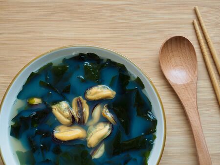 Korean food mussels seaweed soup