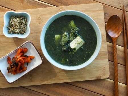 Korean food Capsosiphon fulvescens oyster tofu soup