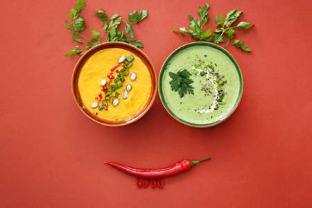 pumpkin soup in white bowl - Vegetarian and vegan food style