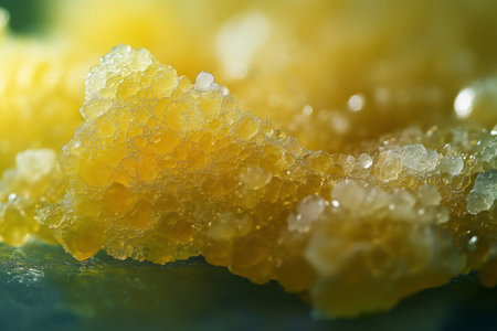 Macro of golden cannabis resin, showing its crystalline texture