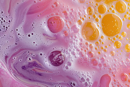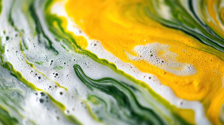 Vibrant and colorful foam with bubbles creates an abstract visual experience. Ideal for projects focused on cleanliness, freshness, and artistic design.