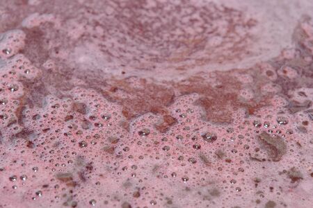 Burgundy foam. Foam texture as background. Background and texture concept. Close up of bubbling burgundy foam