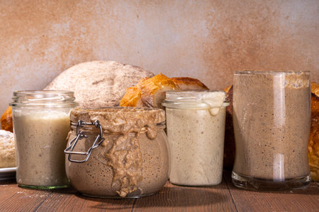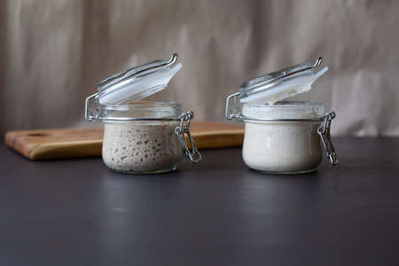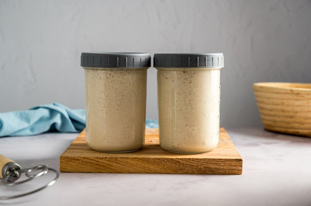 Fresh leaven sourdough starter in glass jars