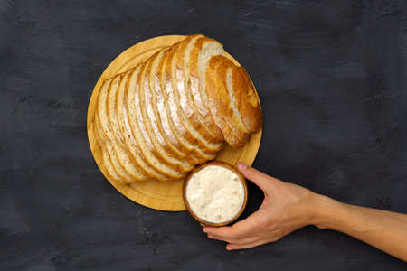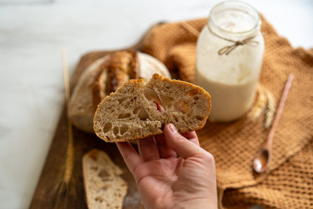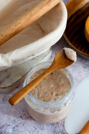 Active sourdough for homemade bread. Wheat and rye bio-wholemeal bread with leaven. Real and organic food concept. Homemade Bread. Ecologic.