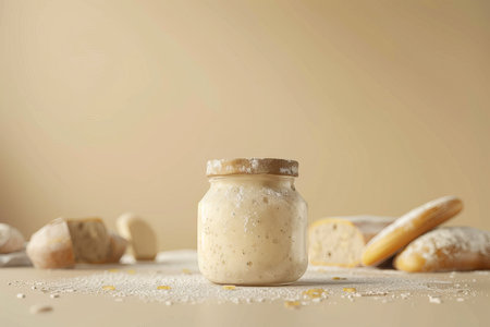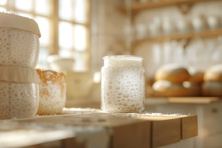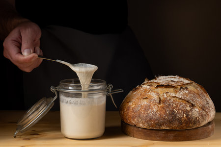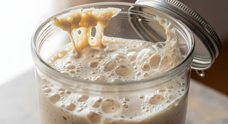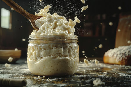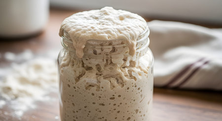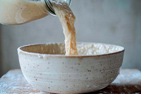 sourdough starter being fed and nurtured in warm, draft-free environment, created with generative ai