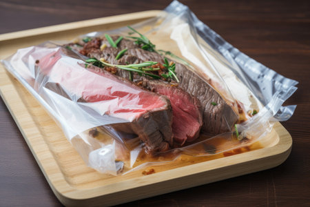 sous-vide flank steak, cooked to succulent perfection in vacuum bag, created with generative ai