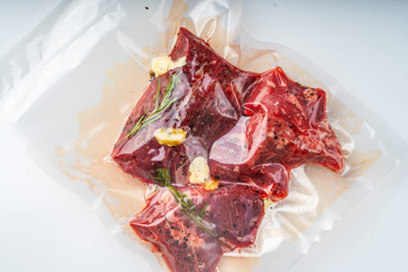 This image showcases a pack of fresh raw meat sealed in vacuum packaging, highlighting its freshness and ideal for culinary applications. Perfect for food enthusiasts.