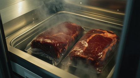 This image features freshly sealed cuts of red meat in vacuum packaging, ideal for culinary uses and showcasing freshness and quality for cooking enthusiasts.