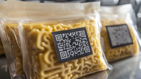 Innovative cheese packaging showcases QR codes, enhancing consumer convenience with accessible information and modern design elements for retail settings.