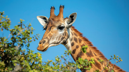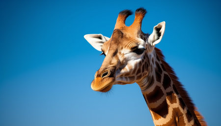 Close up portrait of cute giraffe, standing in African wilderness generated by artificial intelligence