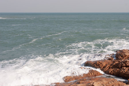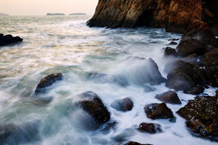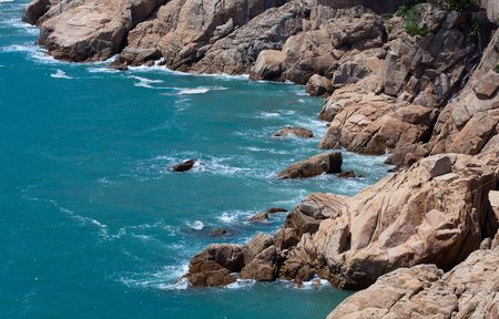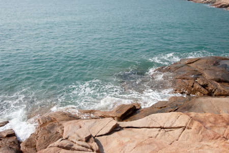 Rocky coast at Shek O Beach, on Hong Kong Island, Hong Kong.