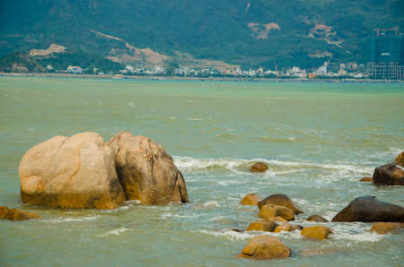 View of the Nha Trang and the hills from Hon Chong cape, Garden stone, popular tourist destinations at Nha Trang. Vietnam. Asia Travel concept. Journey through Vietnam Concept.