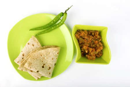 Spicy Indian vegetarian breakfast meal - Indian naan bread - Chapati bread