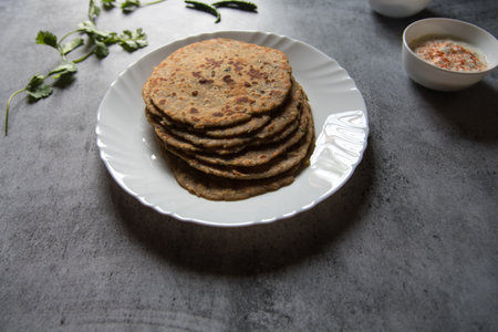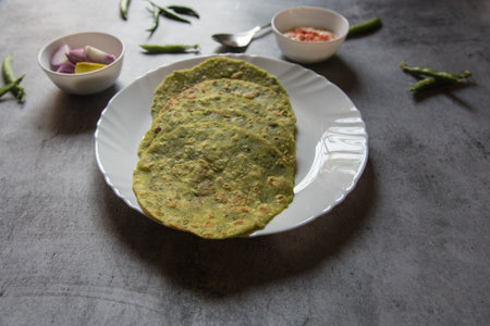 Methi Paratha (Thepla) / Indian flat bread using fenugreek leaves, selective focus