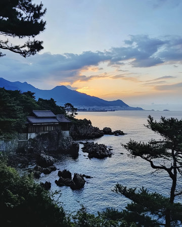 Beautiful sunset from cape Aiai at Izu, Shizuoka, 2024 January