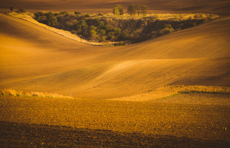 Autumn picturesque rolling countryside of South Moravian fields and vineyards, called Moravian Tuscany, Czech Republic