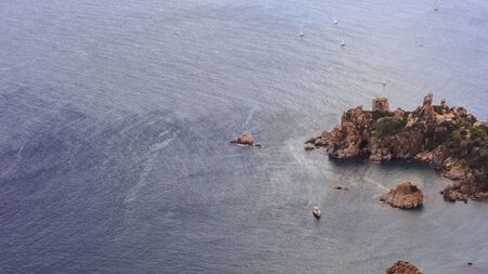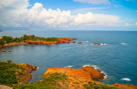 Le Trayas. Franch riviera scenic coastline sunset view, mediterranean sea near Cannes, Cote d'Azur, Provence, Alpes-Maritimes department of France