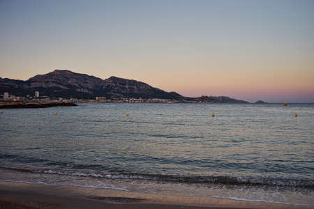 View of sea at sunset, Marseille, France