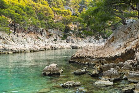 Beautiful nature of Calanques on the azure coast of France. Coast En Vau near in South France.