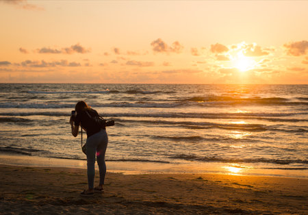 Standing Man watching the ocean view Sunrise. Beautiful morning sunrise on the sea Andaman and Nicobar Islands. India