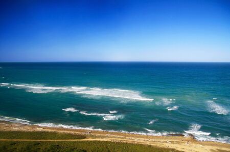 Beautiful seascape with waves and blue sky. Nature background