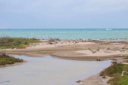 A beautiful soft and fine sandy beach along the gulf coast of Texas in South Padre Island, Texas