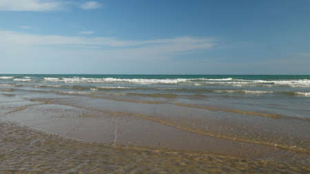 Beautiful seascape, warm autumn sunny day and the waves rolled on the sand.