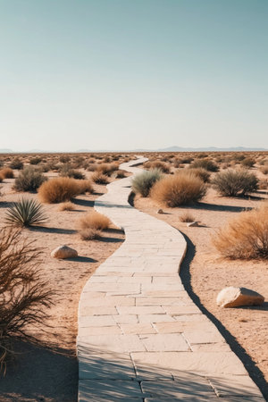 Wooden boardwalk leading to the beach, and clear blue sky on background, copy space