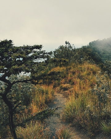 A pathway on the mountain. Cloudy and raining scene.