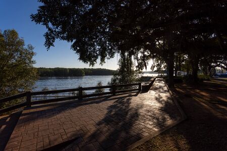 A calm river in rural south Georgia in the Fall on a clear blue sky day