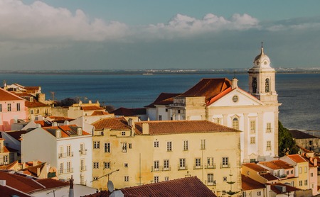 Sunny view of one of the historical neighbourhoods of Lisbon, Portugal.