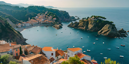 Breathtaking view of a quaint town by the sea, encapsulating the essence of a relaxing getaway. A.I.