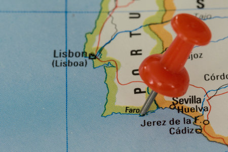 A red pin stuck into a map of Western Europe, pinpointing the location of Fargo