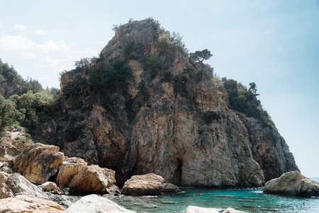 Seascape scenery. Rocks and beautiful natural lagoon at Mediterranean sea coast of Turkey, near Gazipasa town
