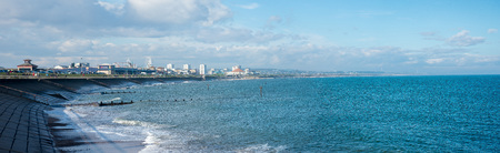 Panoramic aerial done view of Bognor Regis beach, West Sussex, England UK