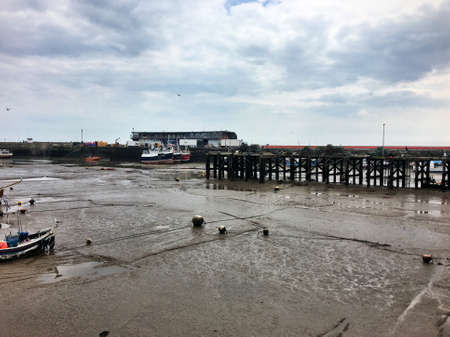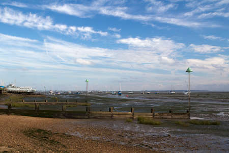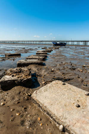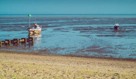 small boats photographed during low tide in Shoeburyness, Essex, UK