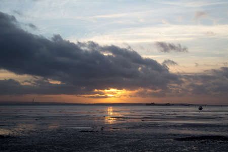 Sunset at Chalkwell beach, near Southend-on-Sea, Essex, England, United Kingdom, with space for text