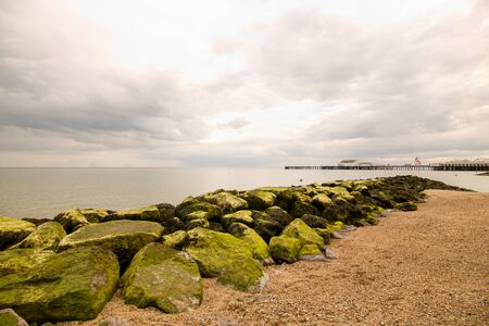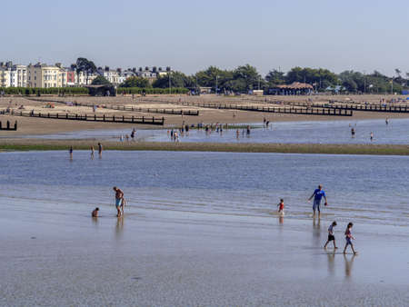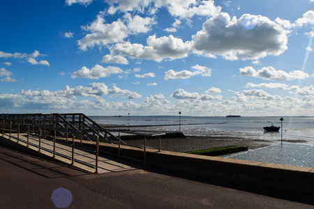 Pathway going out into the sea at Westcliff, Essex, England on a summer's day