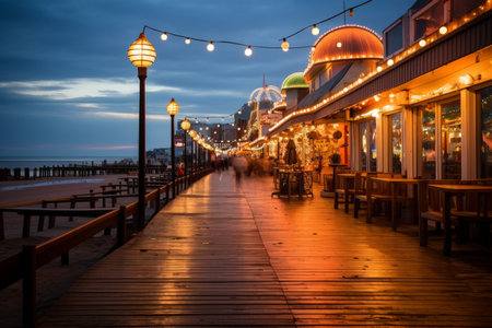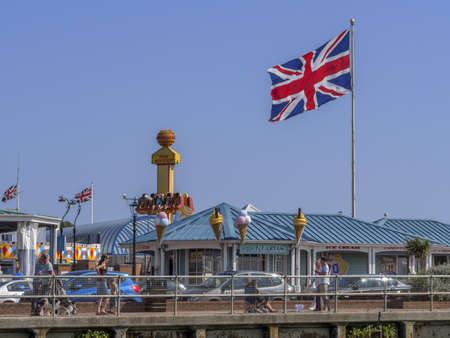 Aerial landscape view of the funfair and seafront of the small Yorkshire seaside town of Bridlington.