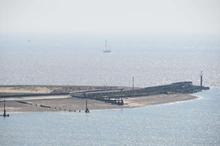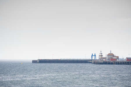 View of the pier and the lighthouse on the North Sea coast of Germany
