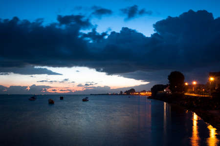 Sunset on the beach and sea with twilight sky when neap tide in Thailand. Inspiration concept.