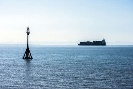 A container ship heading for the Port of Liverpool at crosby, Merseyside, UK.