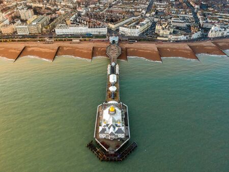 Aerial view of a sunset in a late summer by the Brighton, UK.