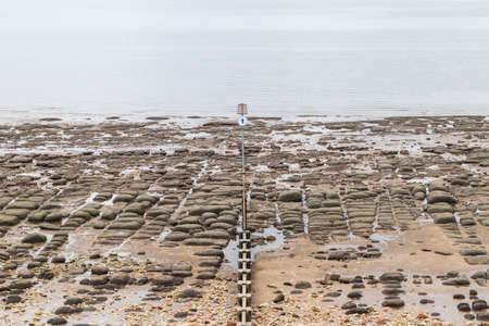 Coastal defences on an English beach. These wooden structures prevent the beach being washed away by the tides.