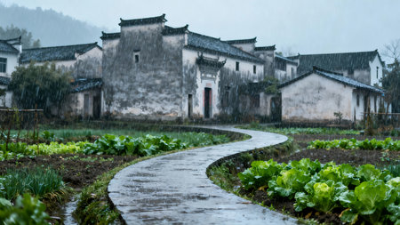 Tranquil village in the pastoral, poetic dwelling in the pastoral landscape