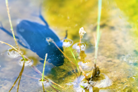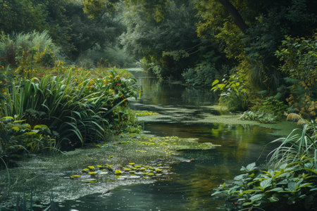 Wetlands and natural carbon sink concept. Freshwater wetland. Blue carbon ecosystem. Natural carbon capture. Sustainable Ecosystems. Green plants in lakes capture CO2 from atmosphere. Generative AI.