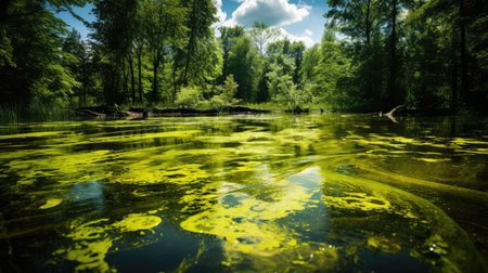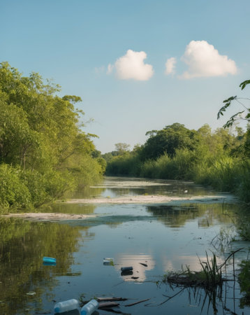 AI Generated. Pollution in a Waterway Surrounded by Nature