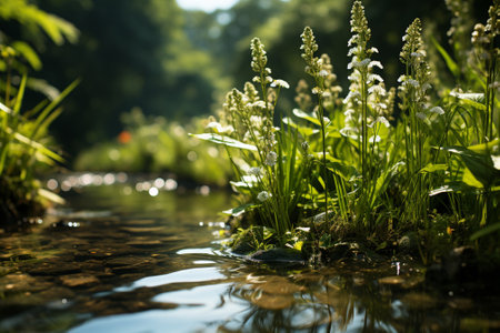 Freshwater Stream: Beautiful Spring Close-Up Generative AI