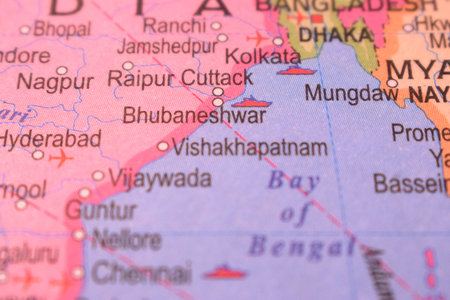 Bhubaneshwar-India Political Map Close Up Photograph With Defocused Background Image