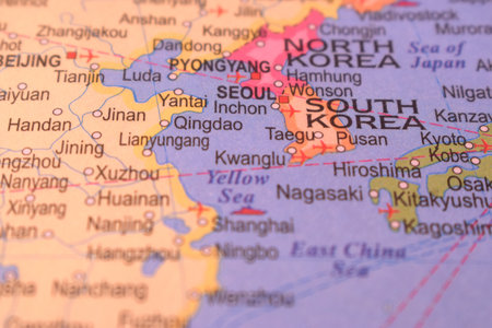 Inchon With Neighboring Countries And Cities On World Map- Political Map Background Blur Image